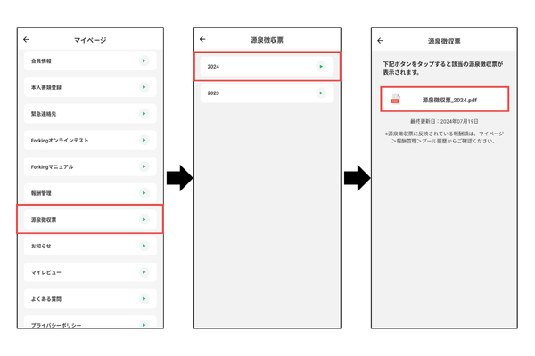 ③PDFボタンをタップし源泉徴収票をダウンロード